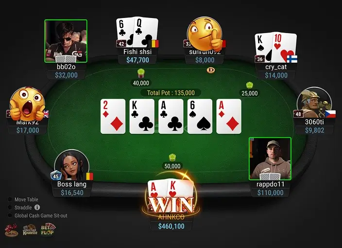 • 摊牌环节(Showdown):比对最终牌型来决定赢家