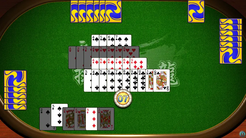 牌局以七点为中心展开,从梅花七、方块七、红桃七、黑桃七开始延伸